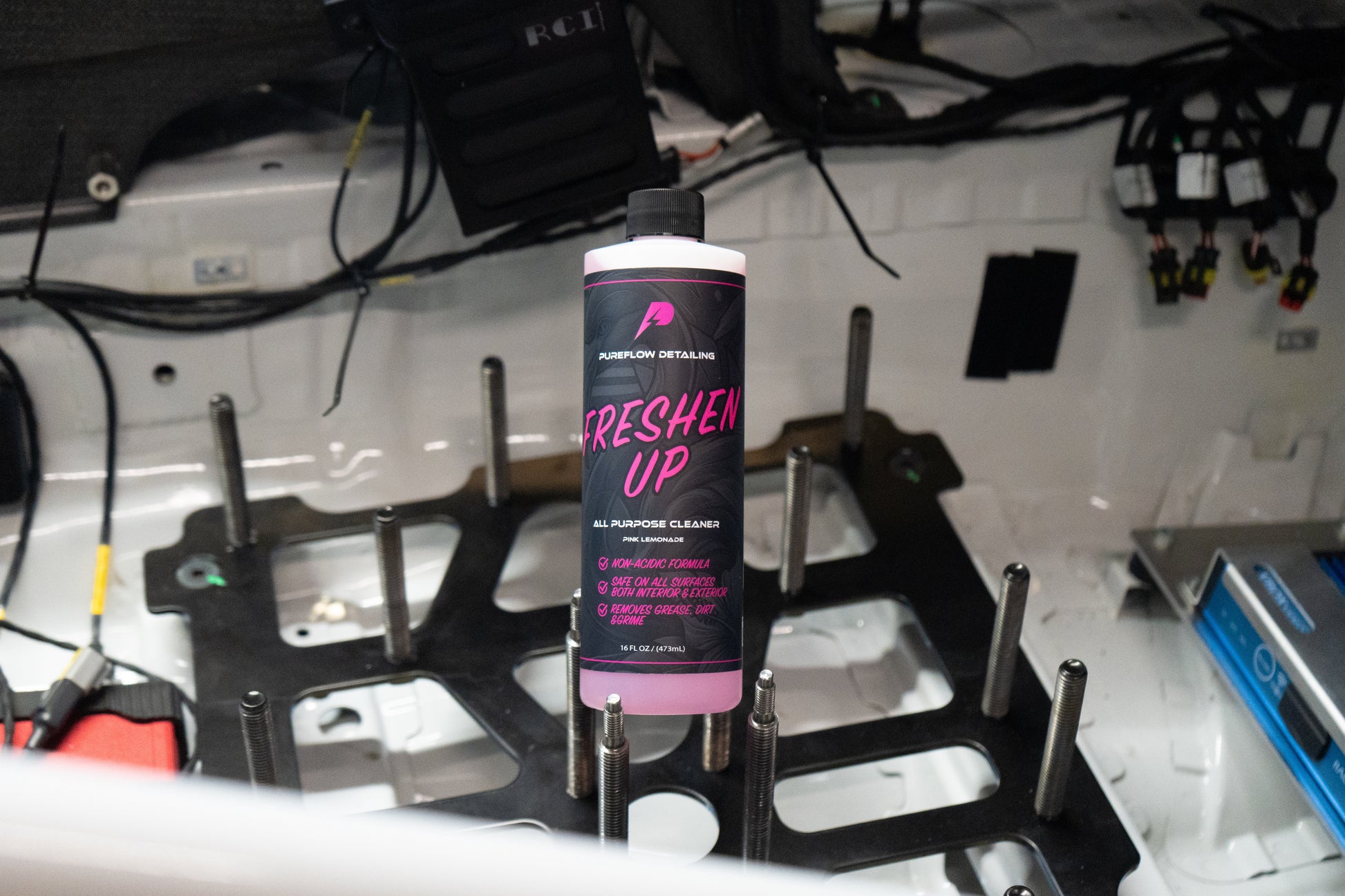 Meet Freshen Up — the ultimate interior detailing solution from PureFlow Performance, designed to clean, protect, and condition in one effortless step. This high-performance, all-purpose interior cleaner is safe for use on leather, vinyl, plastics, fabric, rubber, and more, making it your go-to product for a spotless, factory-fresh interior.